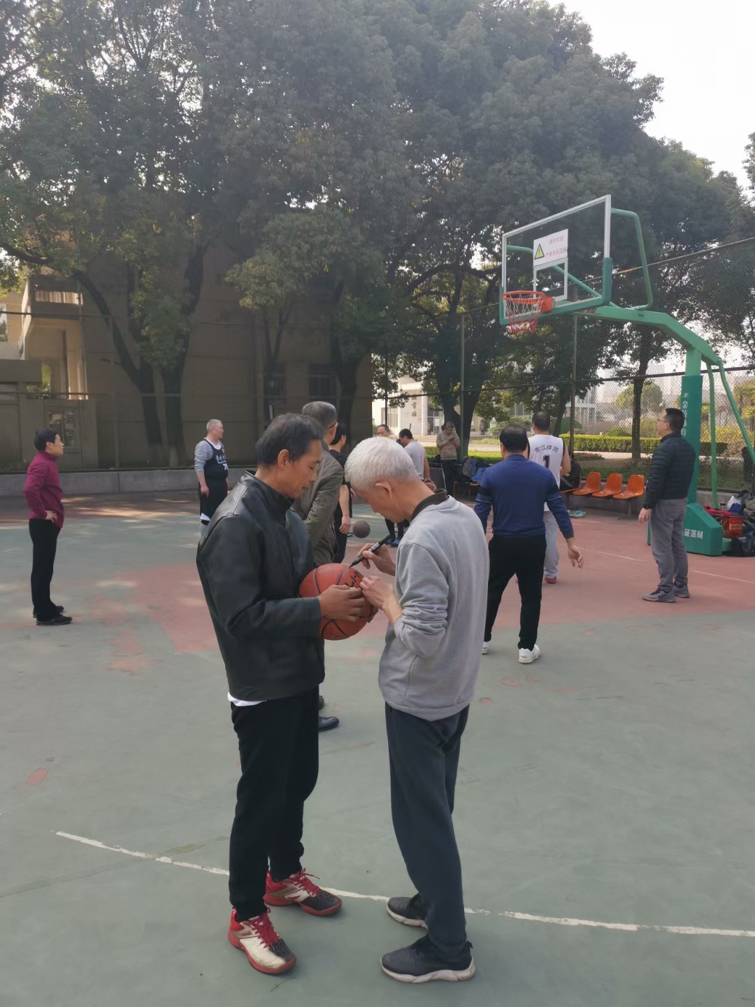 再见了白云、再见了多年来挥洒汗水和充满欢声笑语的球场,她让我们凝结了友谊、强健了身体、感悟了篮球与人生的智慧。3月14日,听说白云的篮球架要移至西太湖,大家不约而同地来到球场,合影留念,想在白云打最后一场篮球赛友谊。第一个来的是资深体育部部长86岁高龄的蒋坤方教授,蒋教授给我们讲述,他是第一个在这个篮球场投进第一个球的人,在这个球场上教学、训练、打球几十年,对这里真的很有感情,今天一定要在这个球场再投一次蓝,来表达对这片土地的热爱。大家对蒋教授86高龄还坚持打球锻炼、身体保持如此好,敬佩不已,顿时觉得年轻了好多。经常与大家一起打球的张宏如副校长、坚持每场必到66岁还身轻如燕的阮宏顺教授、常年为大家热心服务的场长陶慧明都来到了现场。球场成了欢乐的海洋,合影留念、签字篮球、各式投篮,场上比赛、场下欢笑起哄,好不热闹。大家一直觉得球场可以换、坚持要锻炼,友谊不能断、爱校永不变。