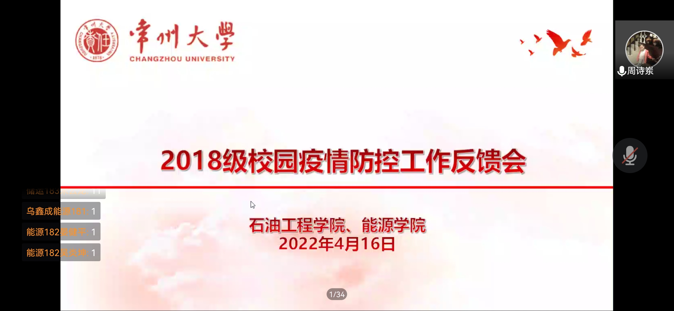 4月16日,石油工程学院、能源学院召开了毕业班疫情防控暨就业动员会,学院党委副书记陆先亮、学院副院长周诗岽和18级全体本科生参加会议,毕业班辅导员魏锦扬主持会议。