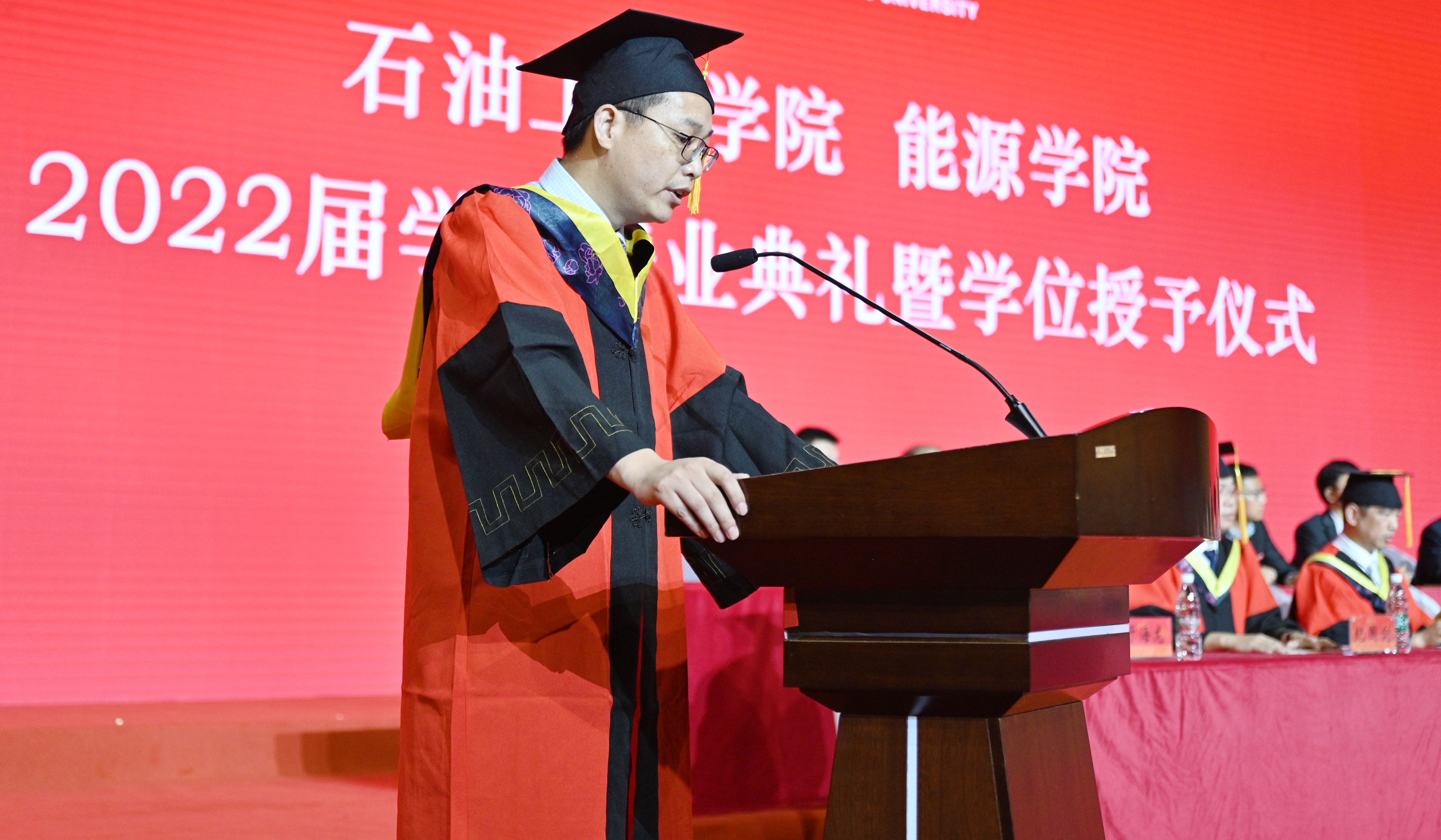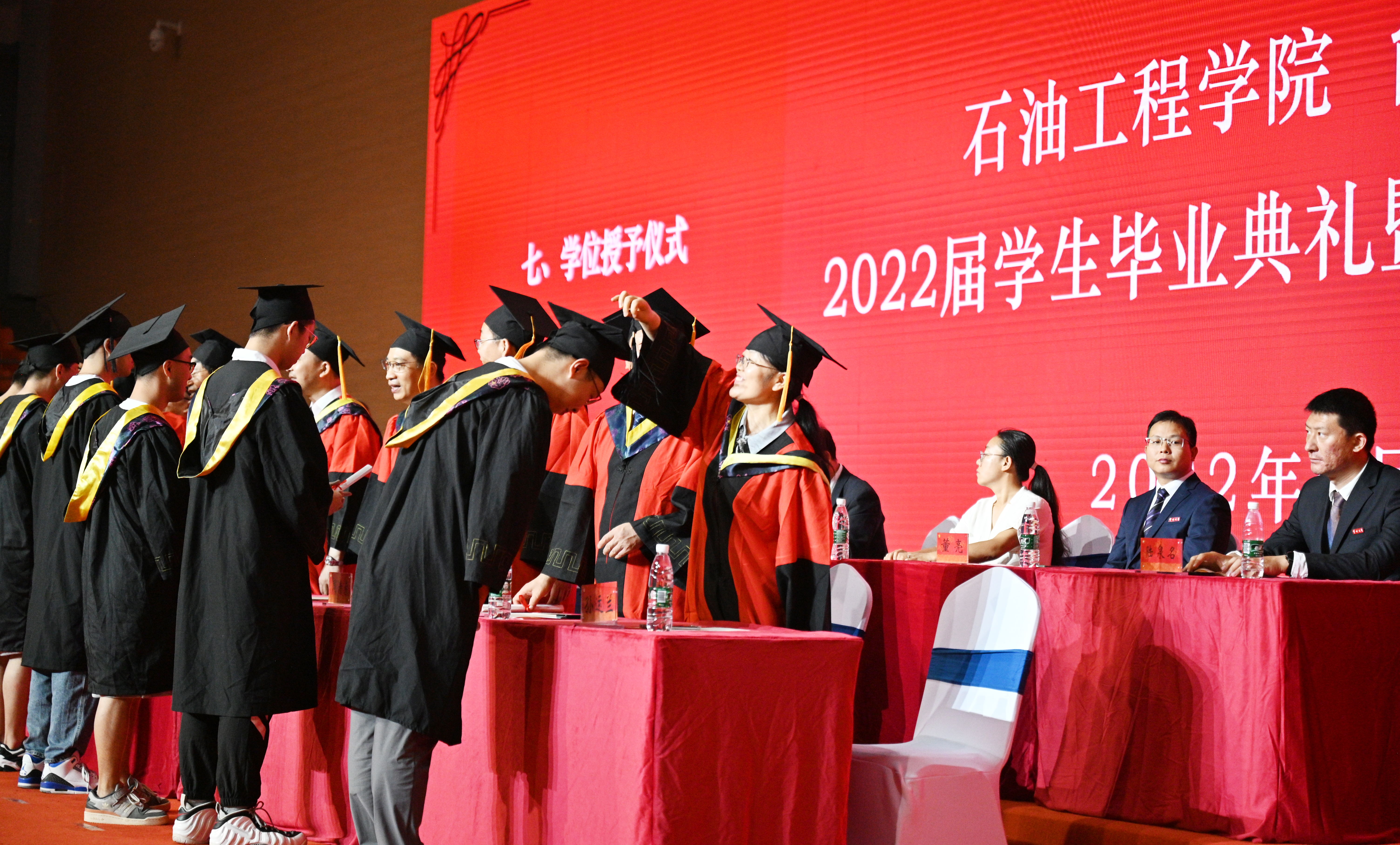 6月18日上午,石油工程学院、能源学院2022届学生毕业典礼暨学位授予仪式议程在科教城校区东区体育馆隆重举行,347名毕业生圆满完成学业,开始人生新的征程。今年毕业典礼暨学位授予仪式采用线上和线下相结合的方式进行,学院党委领导班子成员、院学位委员会委员、学院职能部门负责人出席毕业典礼。教师代表、家长代表、毕业生辅导员及2022届在校毕业生参加毕业典礼。