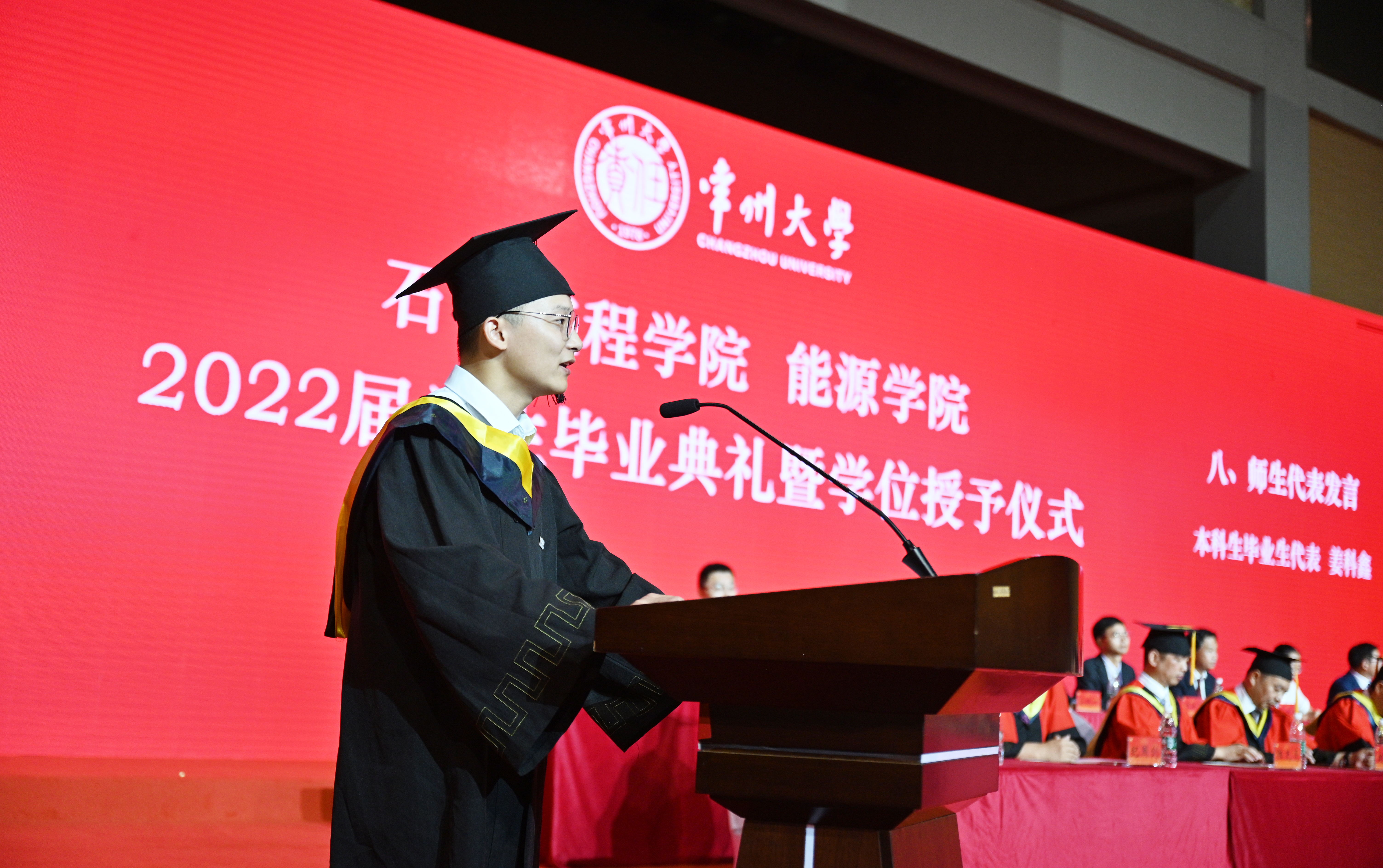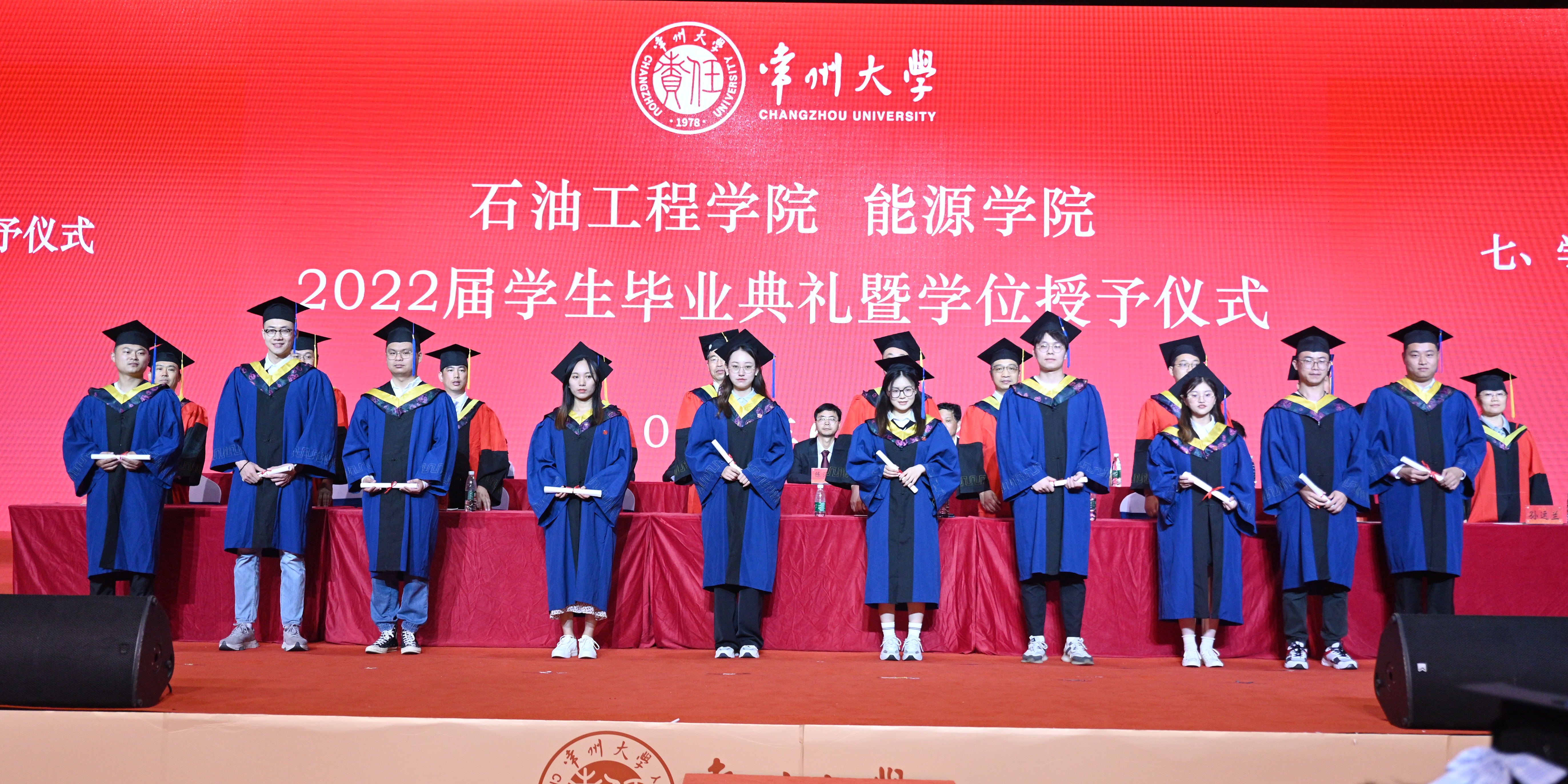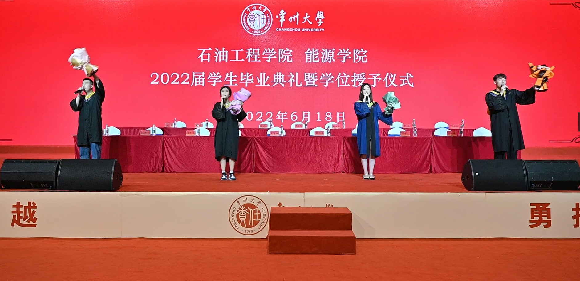 典礼在庄严的国歌声中拉开了序幕。纪国剑宣读2022年考博考研先进个人和先进集体的表彰决定。赵会军宣读优秀毕业研究生表彰决定。陆先亮宣读2022届本科生优秀毕业生、优秀毕业标兵的表彰决定。王政伟宣读常州大学2022届校友工作联络员的表彰决定,并为他们颁发奖状。彭浩平宣读硕士学位授予决定,周诗岽宣读学士学位表彰决定。王永利为考研先进个人和先进集体发放奖金,彭明国为考博先进个人和校优秀毕业研究生颁奖,王政伟为校友联络人颁发聘书。院领导和学术委员会委员为优秀本科毕业生和优秀毕业生标兵颁奖,并为全体毕业生拨流苏、颁授学位证。随后,本科生毕业生代表姜科鑫、研究生毕业生代表赵书诗、教师代表董亮、家长代表徐晟洺依次发言。