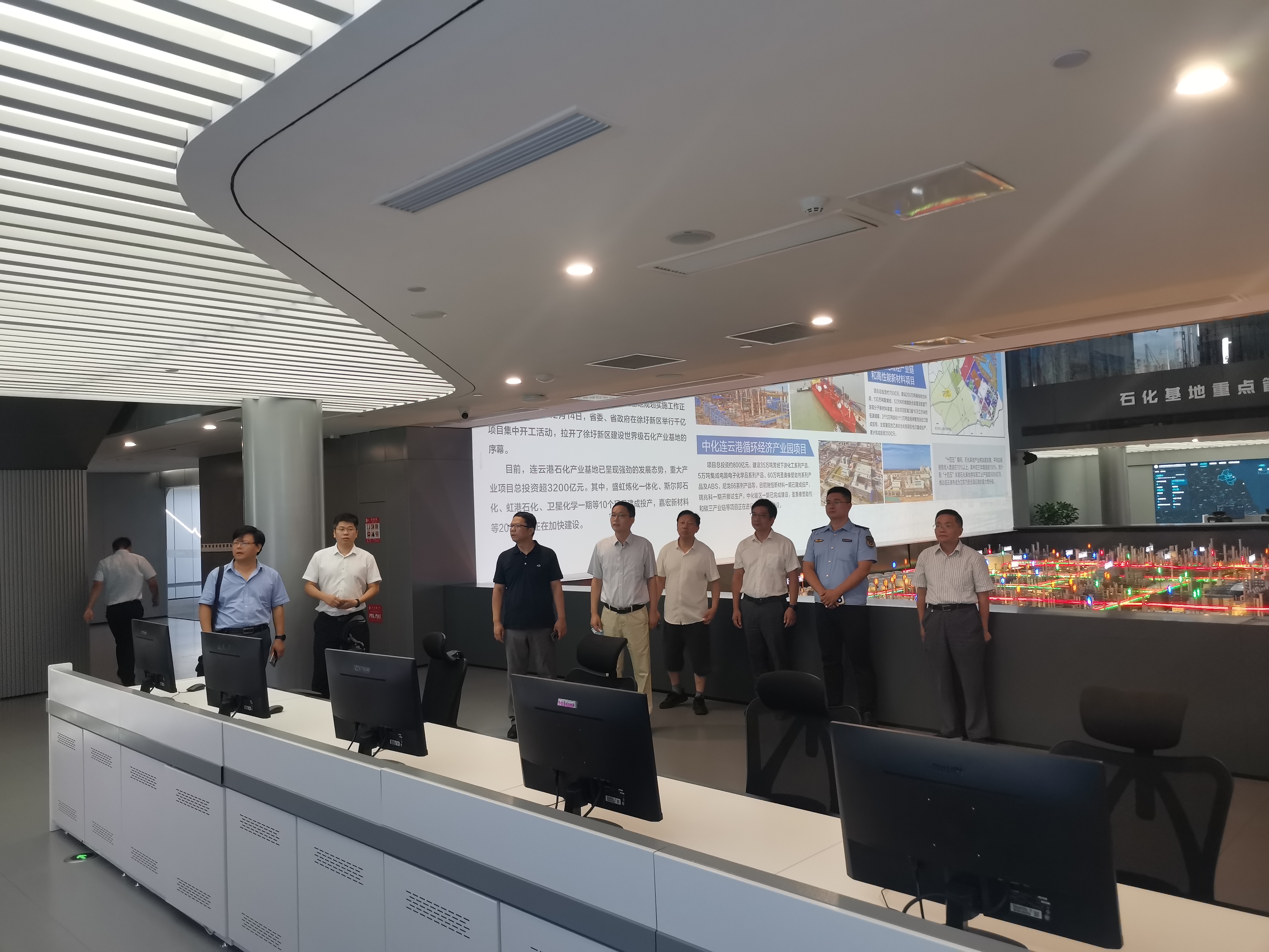 彭浩平一行首先参观了石化基地运管服务中心,深入了解石化基地安全运行和服务保障的综合管理平台建设。随后,来到盛虹石化的全资子公司——江苏斯尔邦石化有限公司,参观了公司中心控制室、空风空压站,了解主要装置的安全环保性。