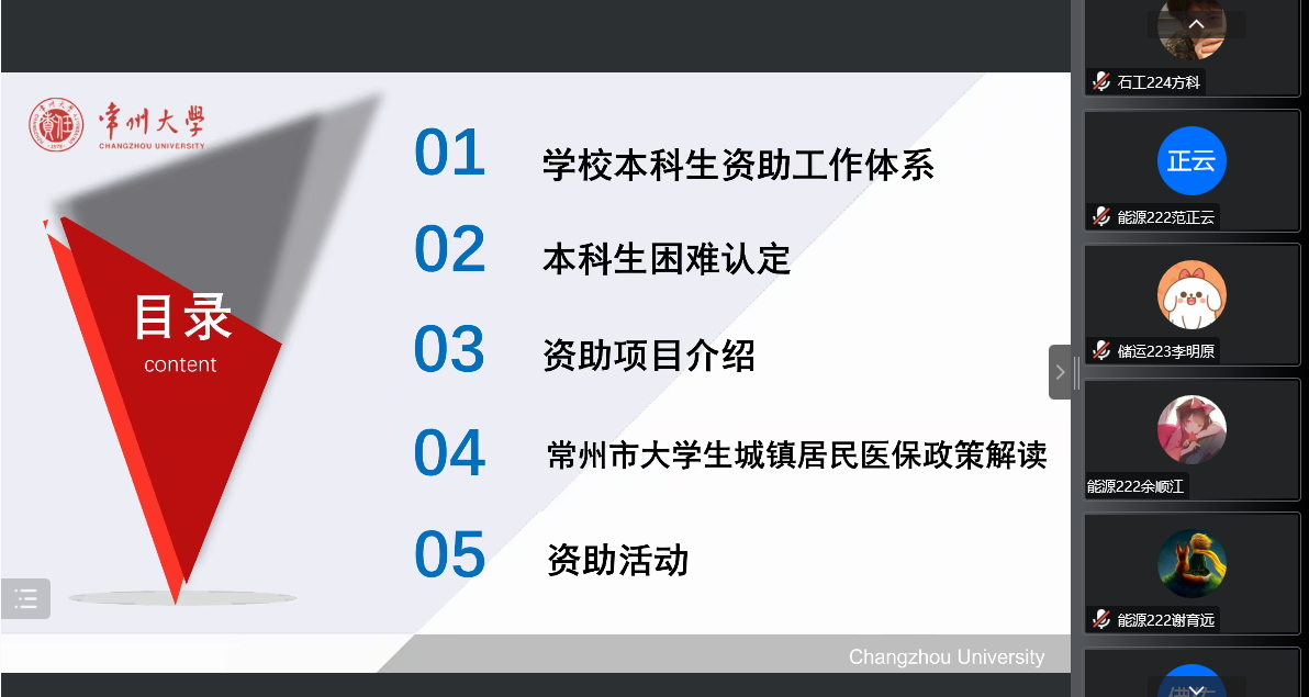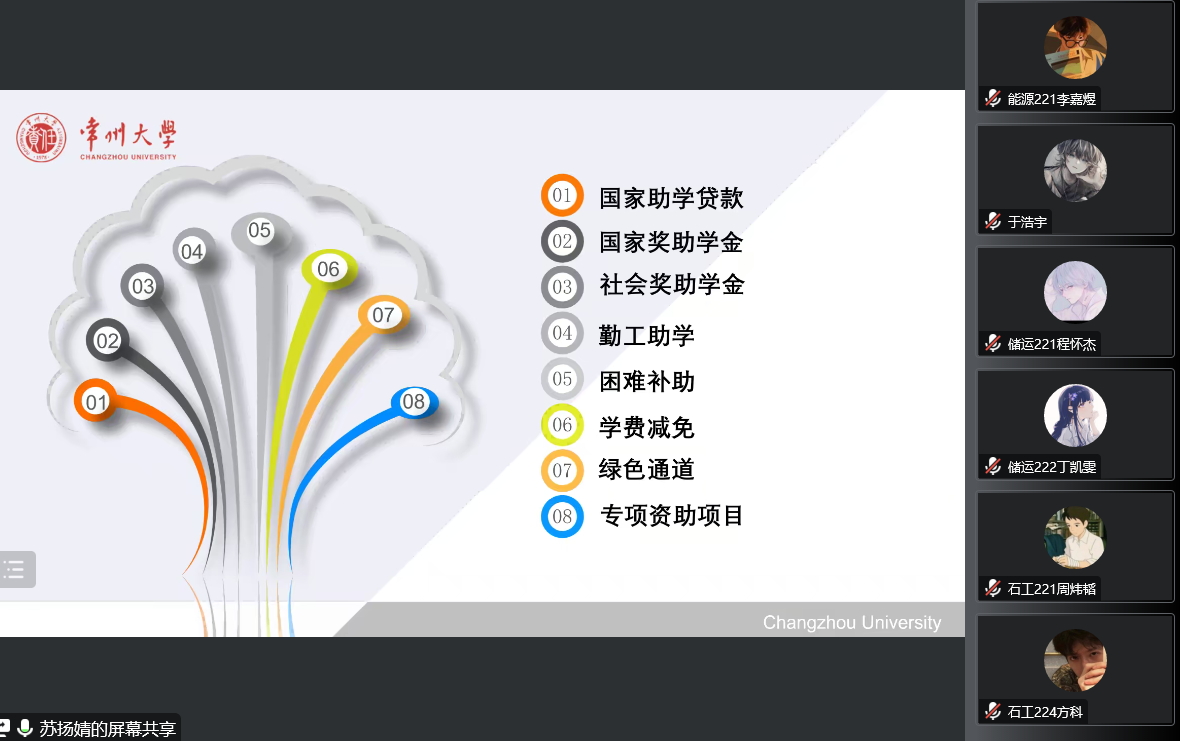 为加强学生资助政策宣传力度,确保国家资助政策落到实处,营造积极进取、奋发向上的良好氛围,石油与天然气工程学院、能源学院于9月27日召开线上2022级新生资助政策宣讲会。2022级辅导员张天露,助学管理中心苏扬婧及2022级全体新生参会。