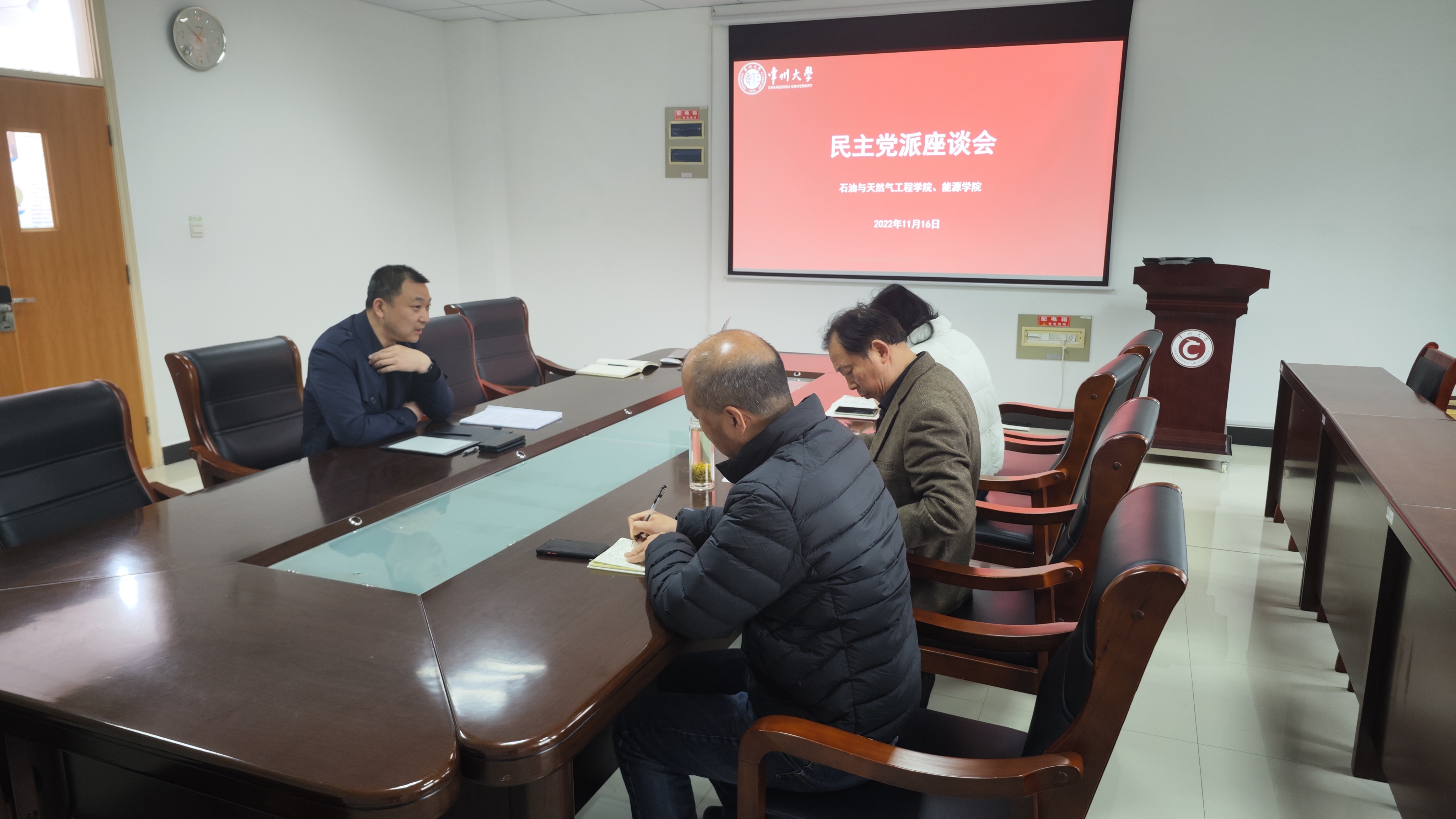 为进一步推动学院高质量发展,11月16日下午,石油与天然气工程学院、能源学院在会议室651召开民主党派代表座谈会,学院院长彭明国、来自九三学社的3名教师代表参加了座谈会。