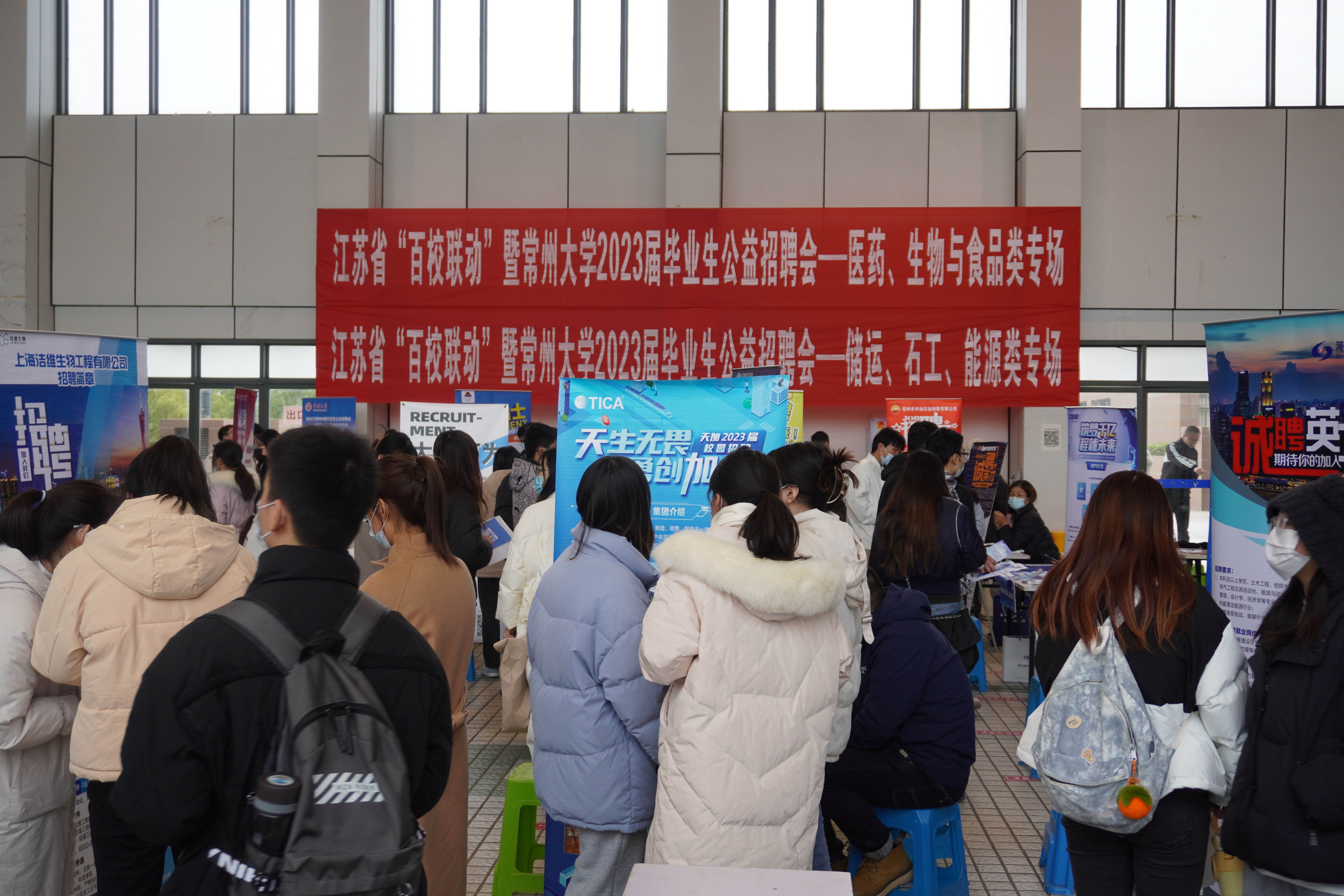 为深入学习贯彻党的二十大精神,积极响应省教育厅关于开展“江苏省2023届高校毕业生就业百校联动”的号召,进一步贯彻落实人才战略,健全就业促进机制,促进高质量充分就业。11月30日下午,江苏省“百校联动”暨常州大学2023届毕业生公益招聘会(储运、石工、能源类专场)在科教城校区主楼二楼平台顺利举办。学院相关负责人莅临招聘会现场了解详细情况,学院毕业班辅导员及2023届毕业生参加了招聘会。