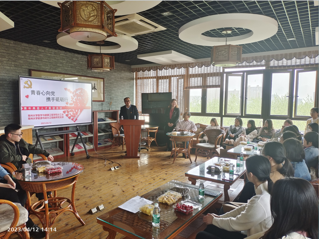 为了党建引领下加快青年教师的快速成长,构建多学科互通桥梁,促进学术融合与协同创新发展。同时关爱青年教职工,搭建良好的交流平台,促进加深彼此联系, 4月12日下午,能源与动力工程教师党支部和医学与健康工程学院分工会在常州大学科教城校区的逸夫楼林上书屋开展了以“青春心向党·携手砥砺行”为主题的青年人才联谊活动。本次主题活动是在全校上下深入学习贯彻中共二十大精神和全国两会精神的浓厚氛围中举行,联谊活动由能源系党支部书记朱宝忠、医工学院党总支副书记韩一松、工会主席潘芳等领导主持。