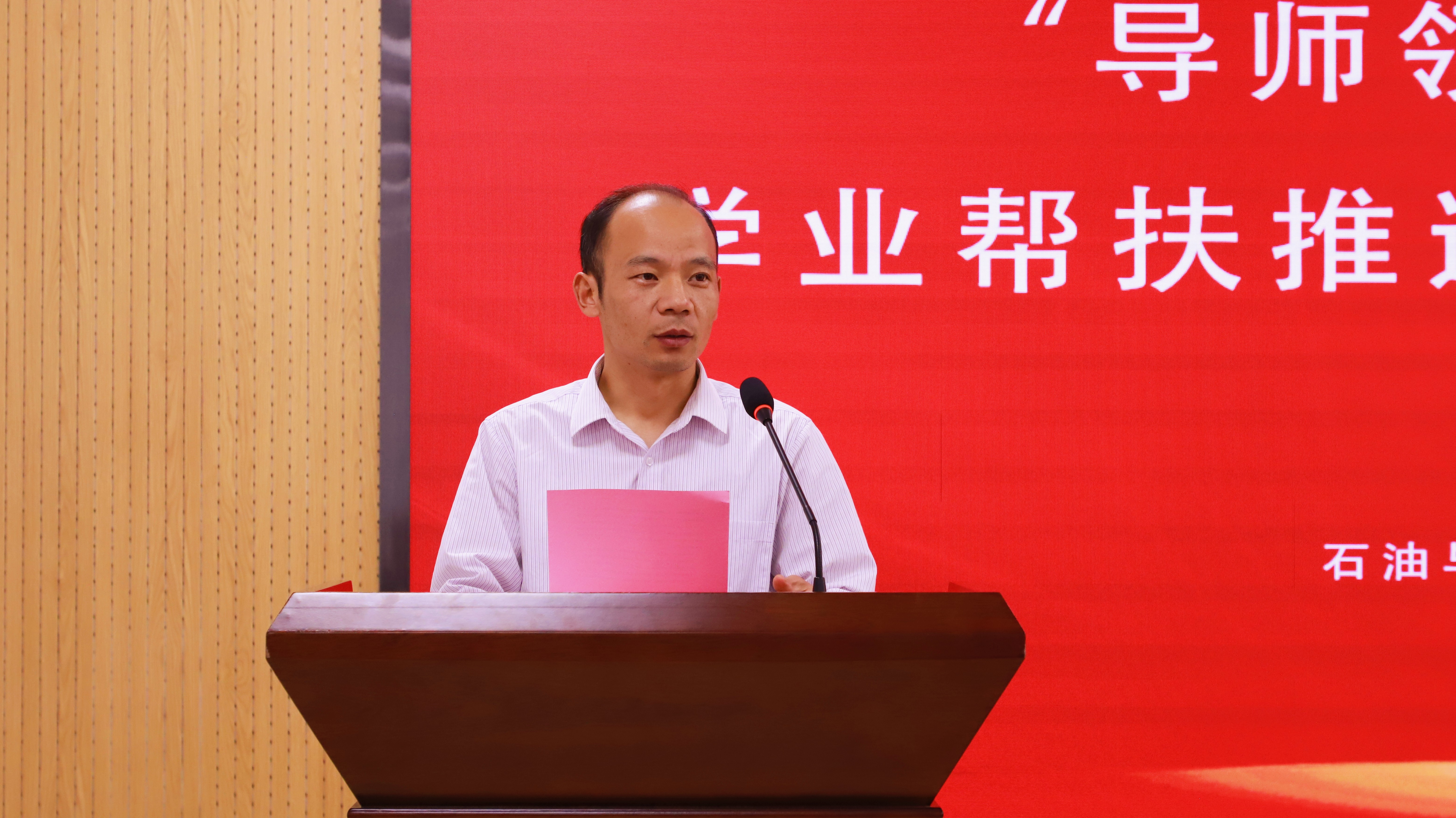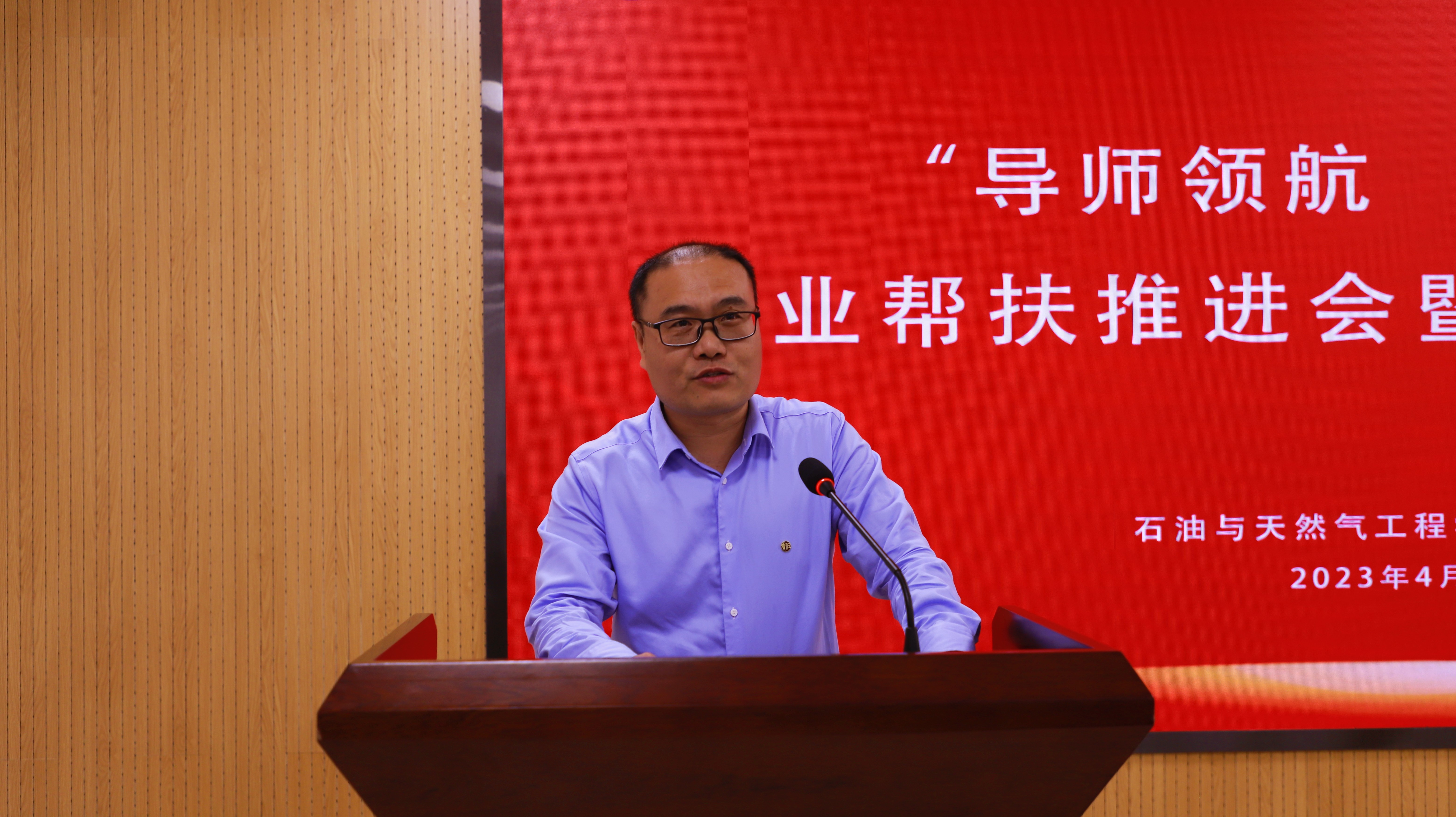 王永宣读了《石油与天然气工程学院能源学院本科生学业帮扶实施方案》。彭浩平、王政伟为导师代表颁发聘书。纪国剑、陈海飞、吕晓方为助航员代表颁发聘书。导师代表朱宝忠、助航员代表洪涛分别作表态发言。彭明国在总结讲话中指出,在深入开展学习贯彻习近平新时代中国特色社会主义思想主题教育之际,我院组织开展“导师领航 同心筑梦”学业帮扶行动,既是深入贯彻习近平总书记关于青年学生成长成才重要思想的集中体现,又是进一步强化学院学风建设、全面提高人才培养质量的重要举措。他希望大家一要提高思想站位,勇担育人使命;二要创新工作方式,实施精准帮扶;三要完善协作机制,增强帮扶实效。