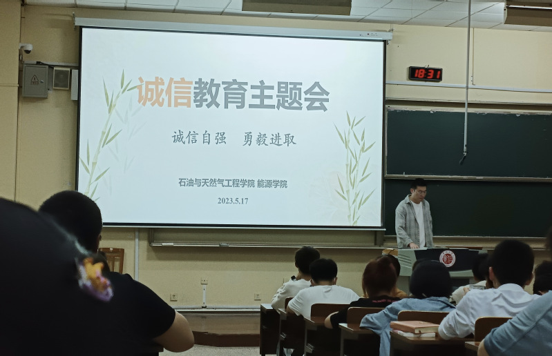 为了进一步提高学生综合素质与能力、增强诚信意识,培养学生“诚信自强,勇毅进取”的品质,5月17日,石油与天然气工程学院能源学院于W8阶召开诚信教育主题会议。辅导员张天露老师担任主讲,22级全体本科学生参会。