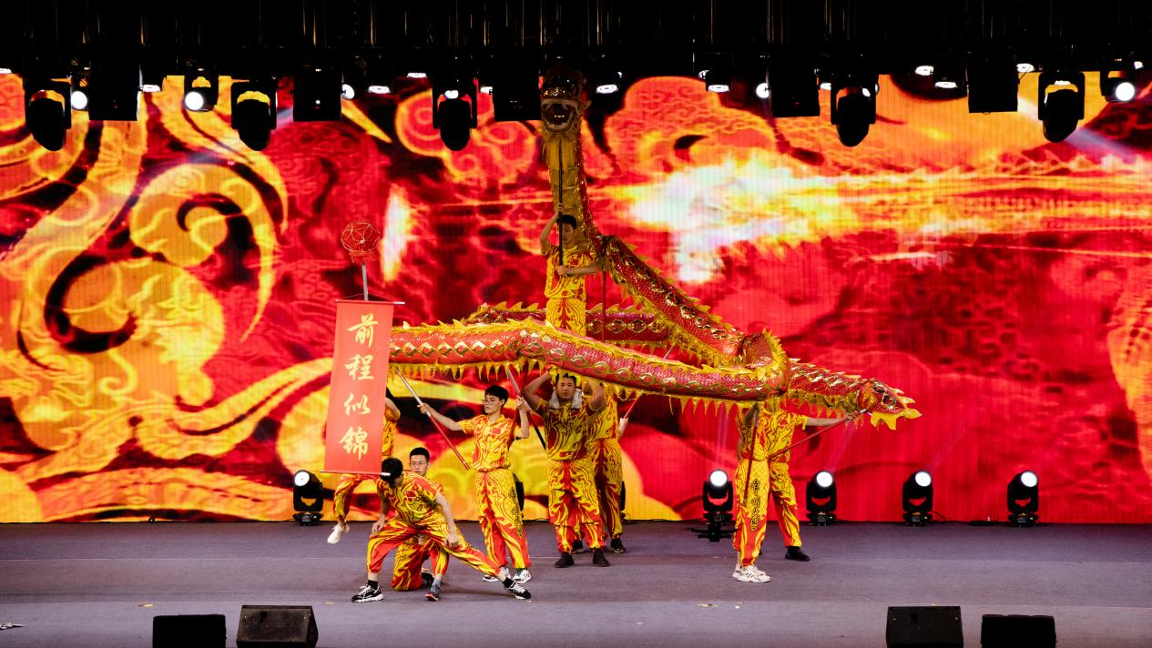 文艺演出由“以梦为马行远自迩”“芳华待灼行而不辍”“无悔青春逐梦星河”三个篇章组成。校街舞联盟、楼兰剧社心韵演绎部、校舞龙队、单程票乐队和学院各年级同学献上了精彩的表演。《你曾是少年》《我记得》《忽然之间》……一首首熟悉的旋律响起,赢得现场阵阵掌声与欢呼。
