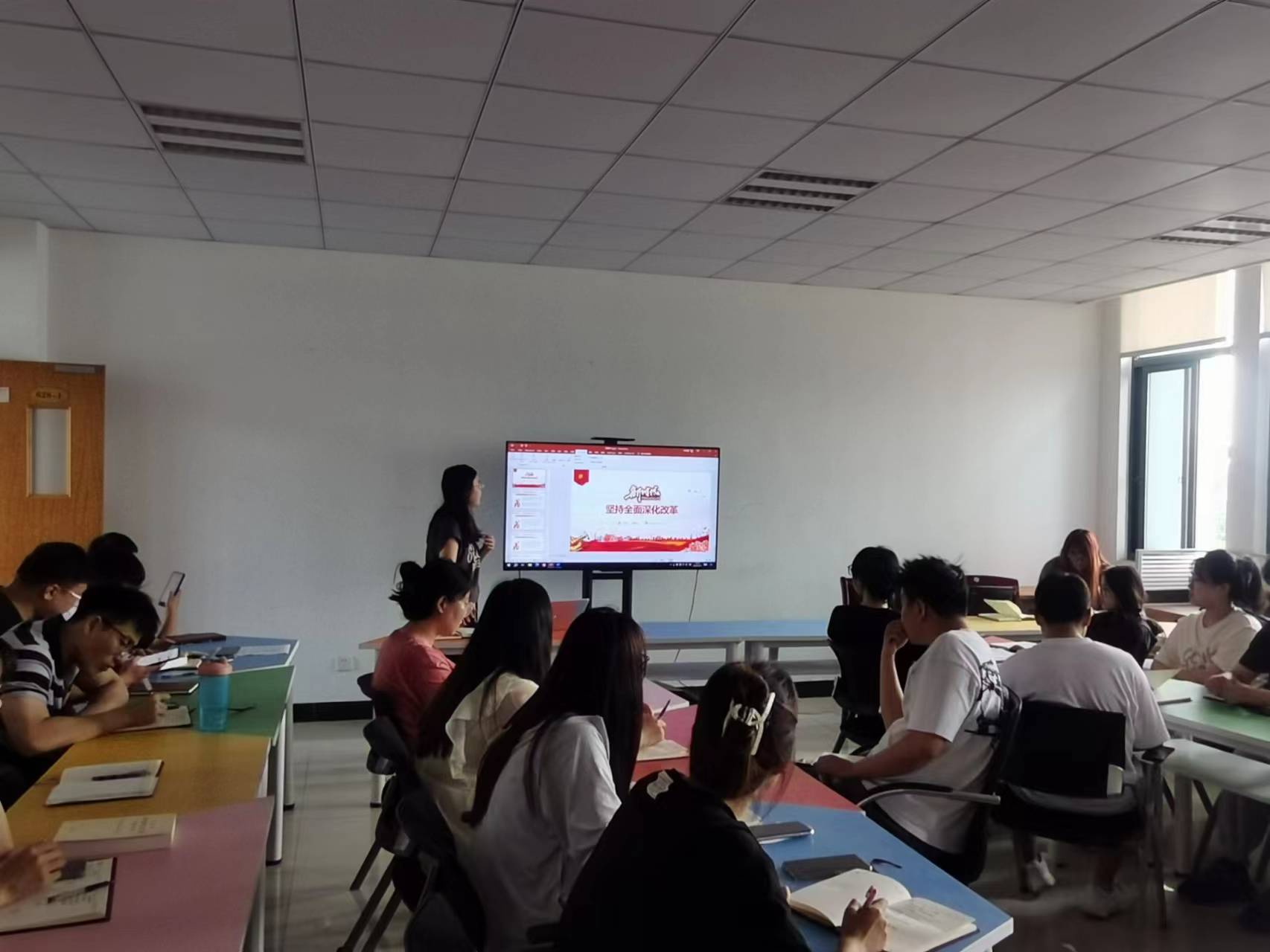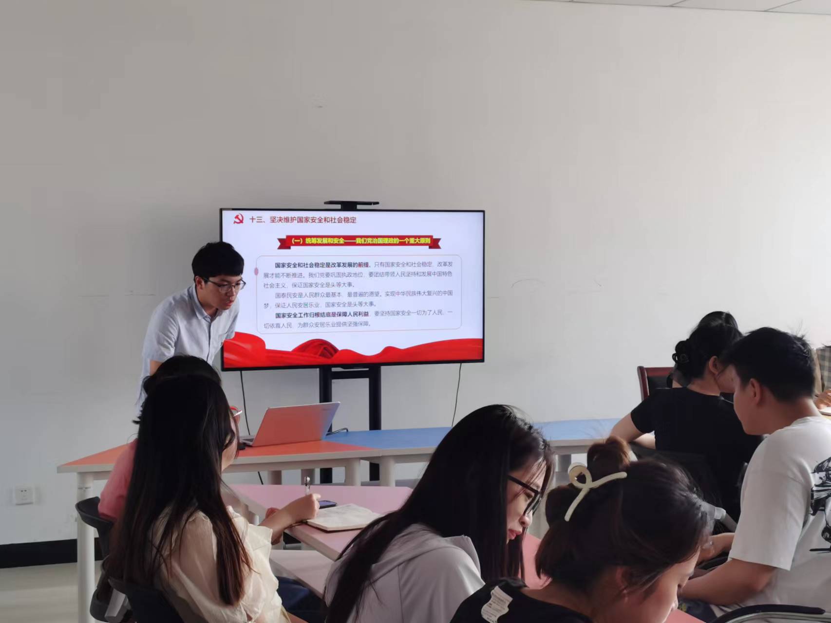 会上,三位同志就《习近平新时代中国特色社会主义思想专题摘编》进行了理解和学习交流,刘昊德同志讲述了党奋斗百年路,在新征程上要以坚持学思用贯通、知信行统一;周雨凡同志提倡要坚持深化改革,保障改善民生,促进人与自然和谐共生;时亚东同志表示要坚决维护国家安全,坚持“一国两制”国策不动摇。在听取三位同志的讲话后,赵玉儿同志和窦芮同志就主题教育分享了学习心得。