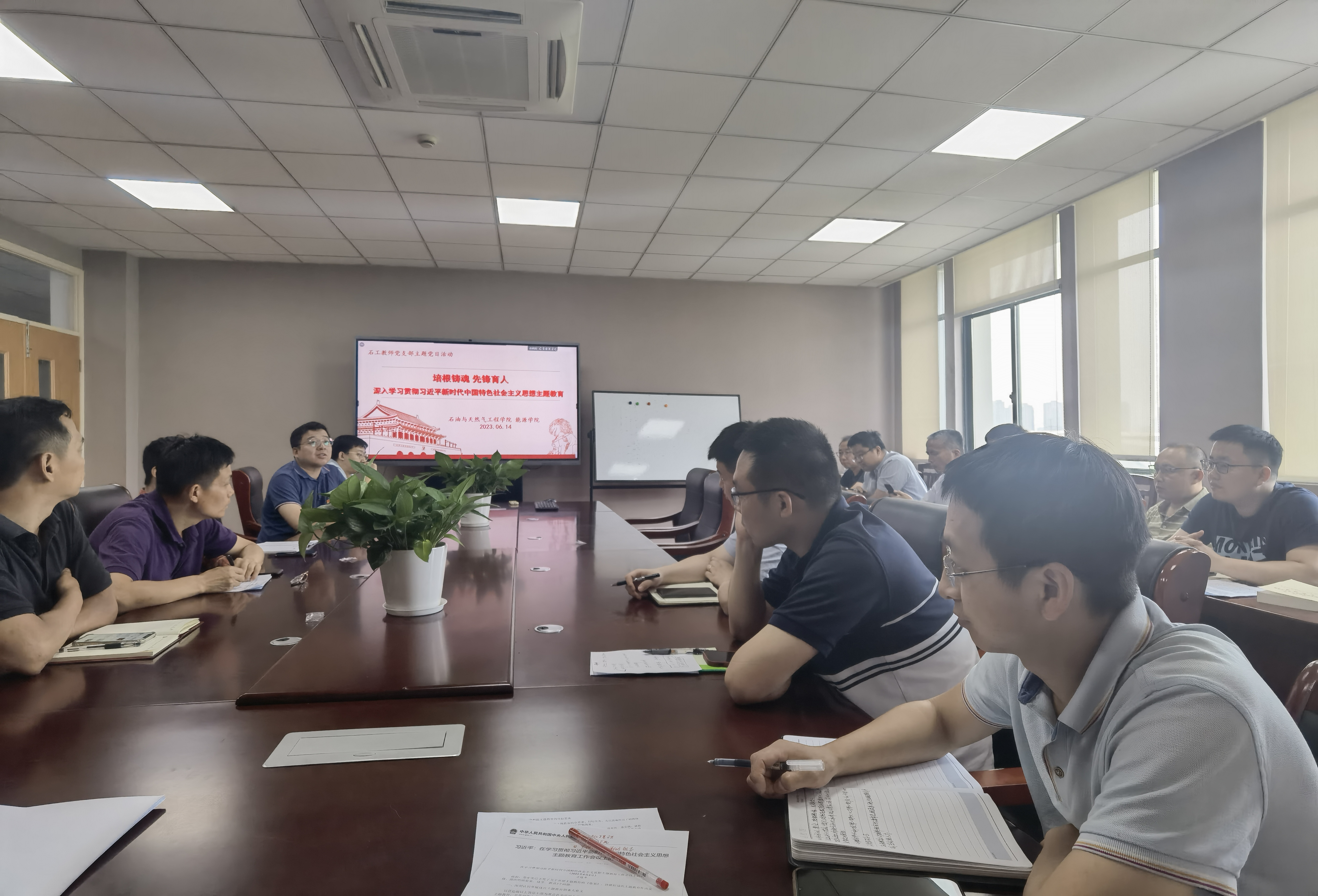 为了学深悟透习近平新时代中国特色社会主义思想,进一步贯彻落实二十大会议精神和内涵,石工教师党支部于6月14日下午在乐行楼652会议室开展主题教育学习暨民族团结讨论活动,活动由专业负责人邓嵩主持,石工教师党支部全体党员及石工22级两位少数民族学生代表冯曦和邓淞元参加。