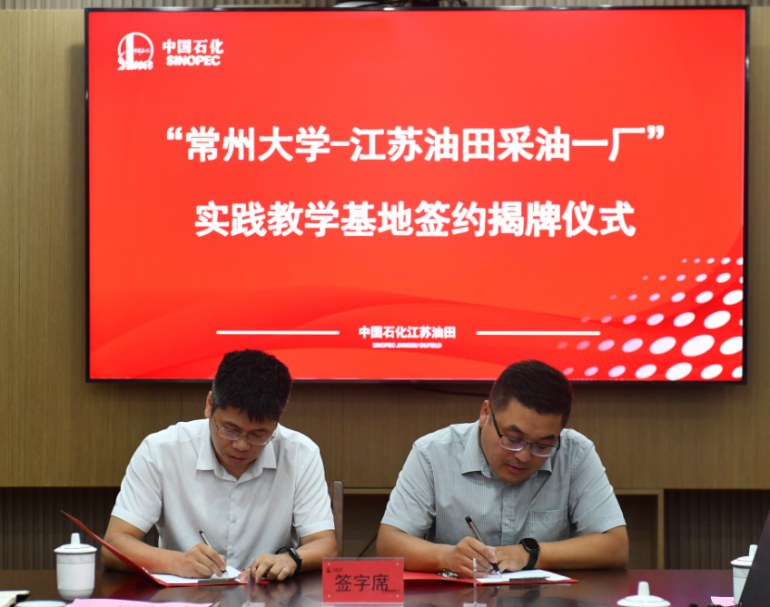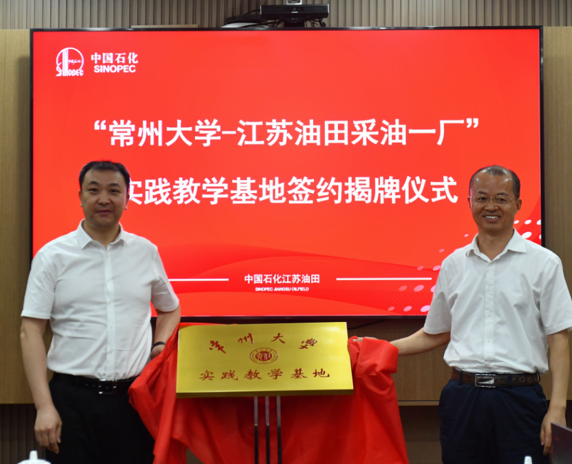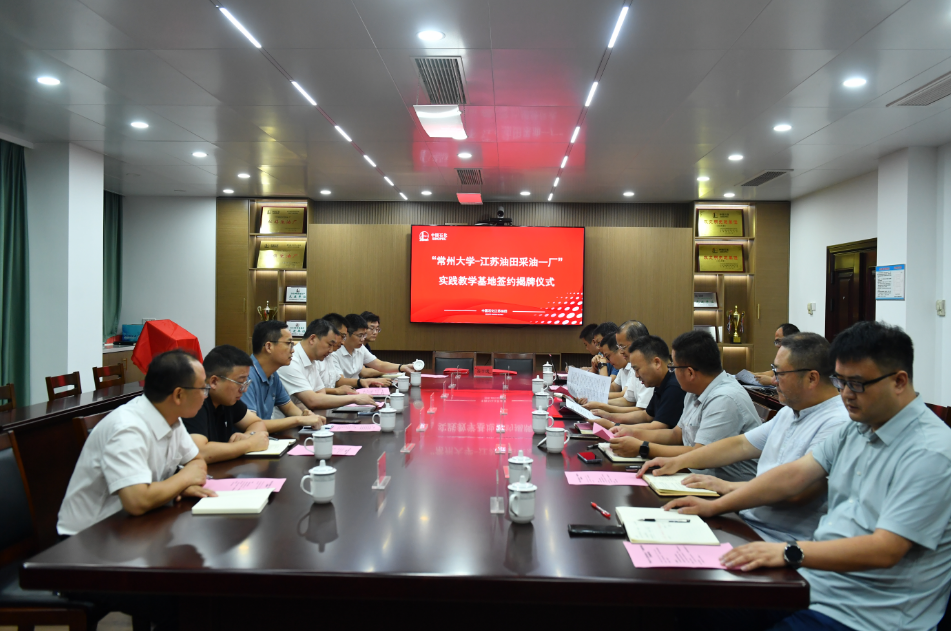 8月28日,常州大学与中国石化江苏油田“实践教学基地”签约揭牌仪式在江苏油田采油一厂举行,江苏油田副总经理唐建东、采油一厂厂长孔维军、纪委书记杨国松、副厂长李立峰、江苏油田综合管理专家王强及采油一厂相关领导,常州大学副校长、石油与天然气工程学院能源学院院长彭明国、学院党委书记彭浩平、副院长周诗岽、纪国剑、院长助理邓嵩及石油工程专业部分教师代表参加了签约揭牌仪式,活动由采油一厂厂长孔维军主持。