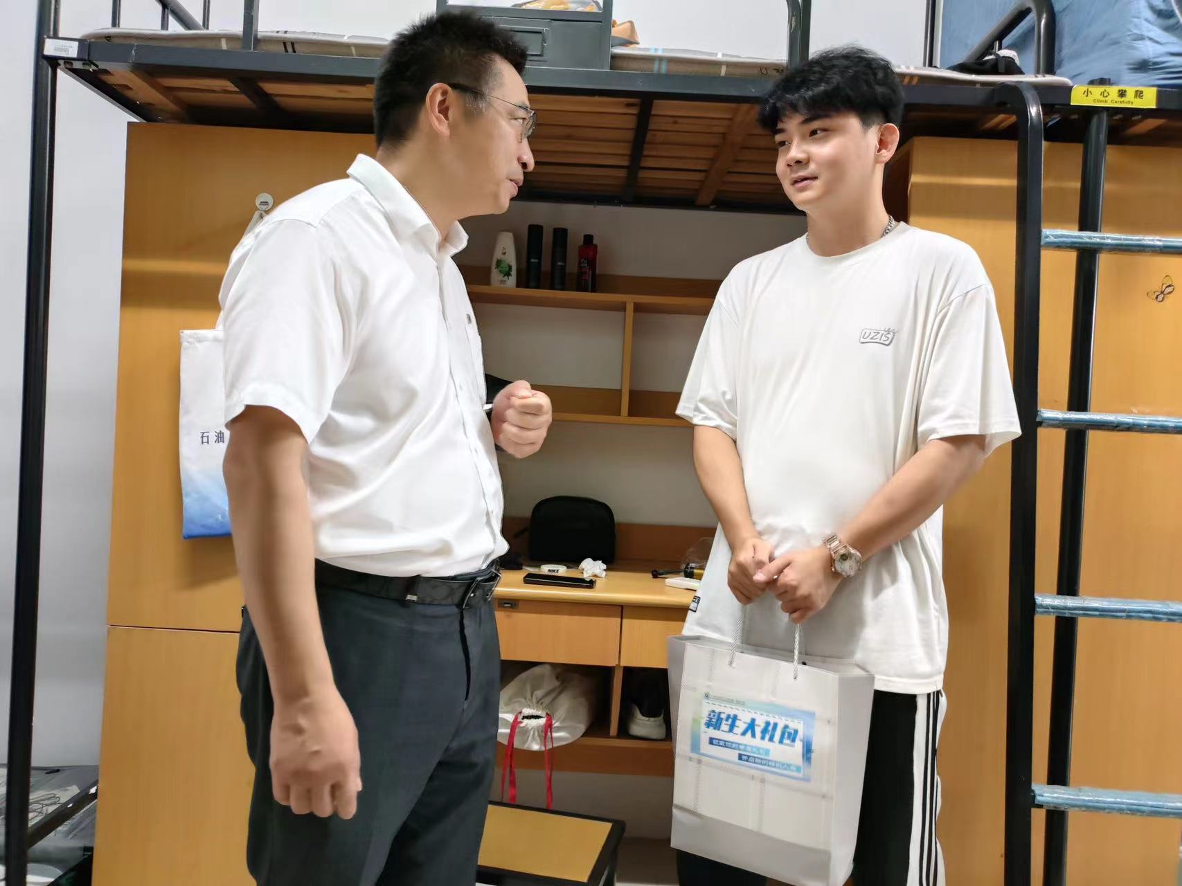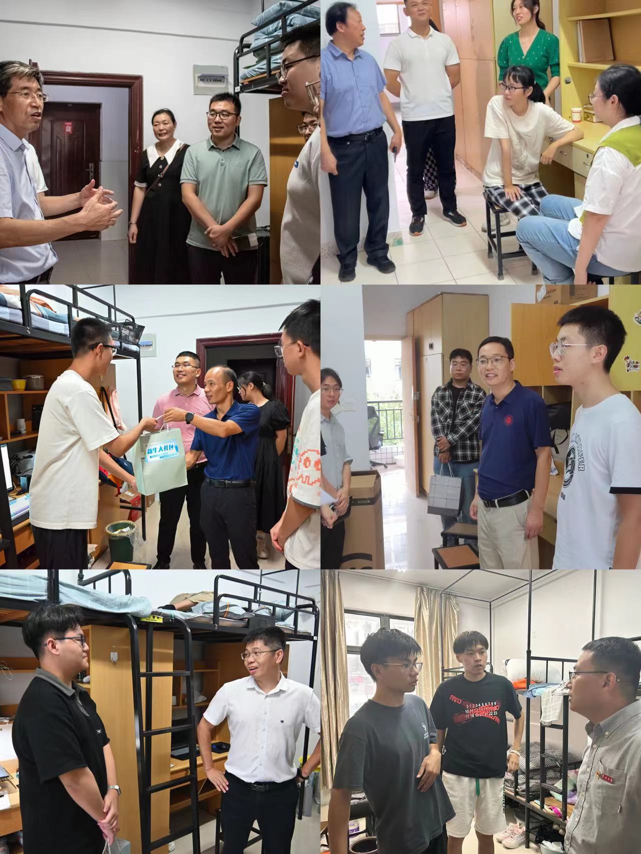 学院秉承以人为本的理念,始终将新生和家长的需求放在首位。在报到现场,不仅为新生和家长准备了小礼物,还特别为因“舟车劳顿”还没来得及吃饭的新生和家长准备了“一点心意”,送上水和面包等零食。此外,学院领导、辅导员和班主任分成七组,走访慰问了109个本硕新生宿舍,为每个宿舍送上充满温情和关爱的“新生大礼包”。