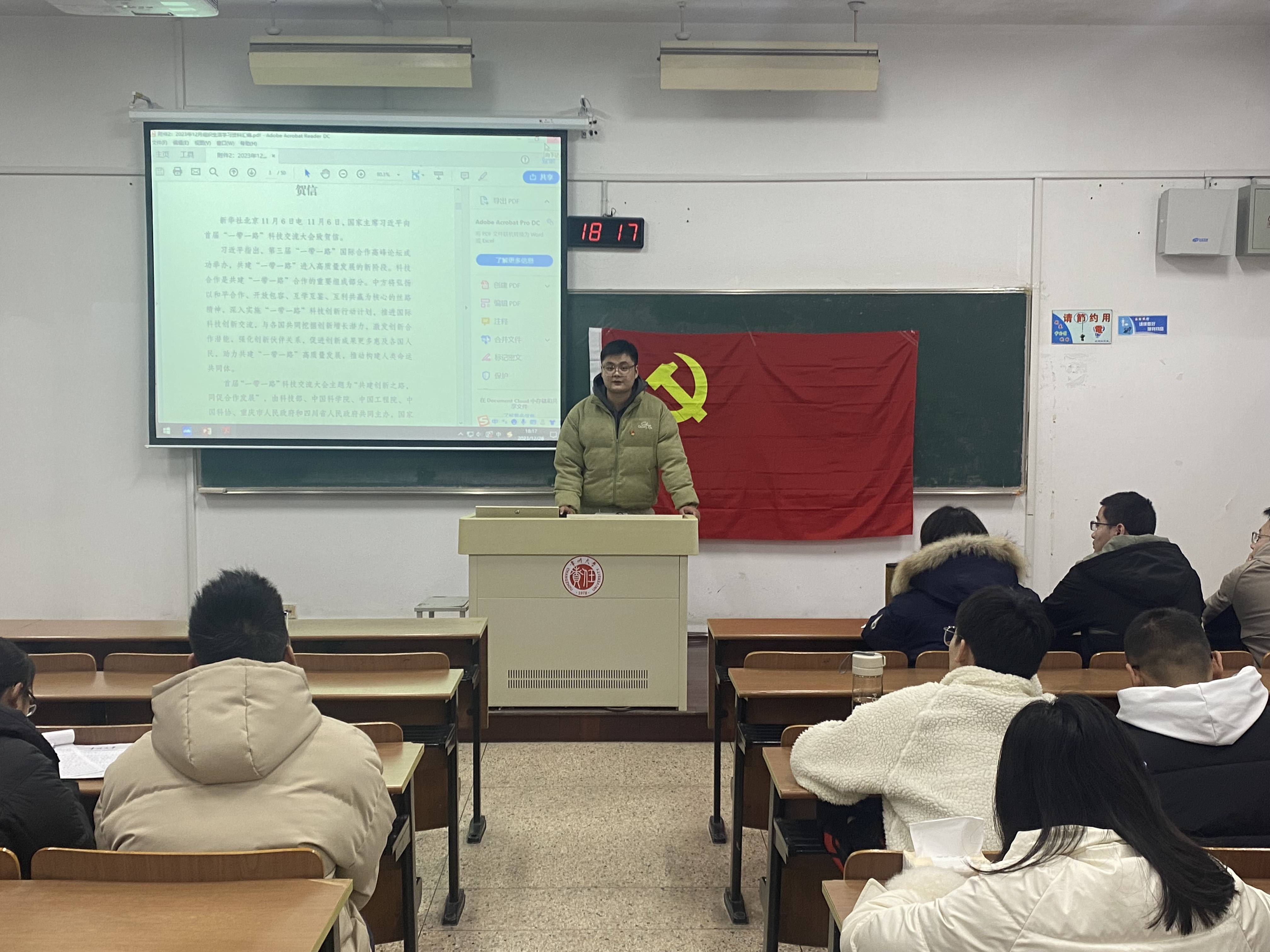 2023年12月28日,石油与天然气工程学院能源学院本科生党支部在W1102教室开展主题党日活动。活动由党支部书记阴蕾主持,支部全体党员参加了本次党日活动。