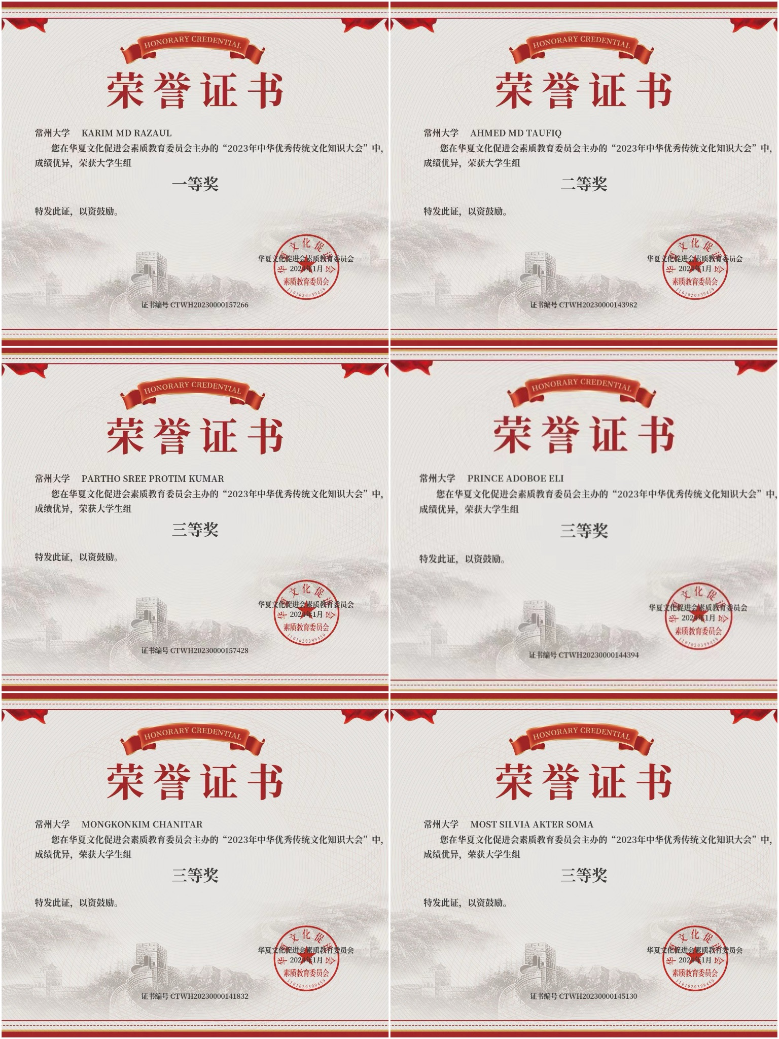 在本次活动中,我院共有63名留学生参赛,6名留学生获奖,其中一等奖1名,二等奖1名,三等奖4名,我校获得优秀组织单位荣誉。参赛选手通过对中华优秀传统文化的深入学习和探索,在剪纸、书法与绘画方面展现出了出色的实践能力和文化素养。