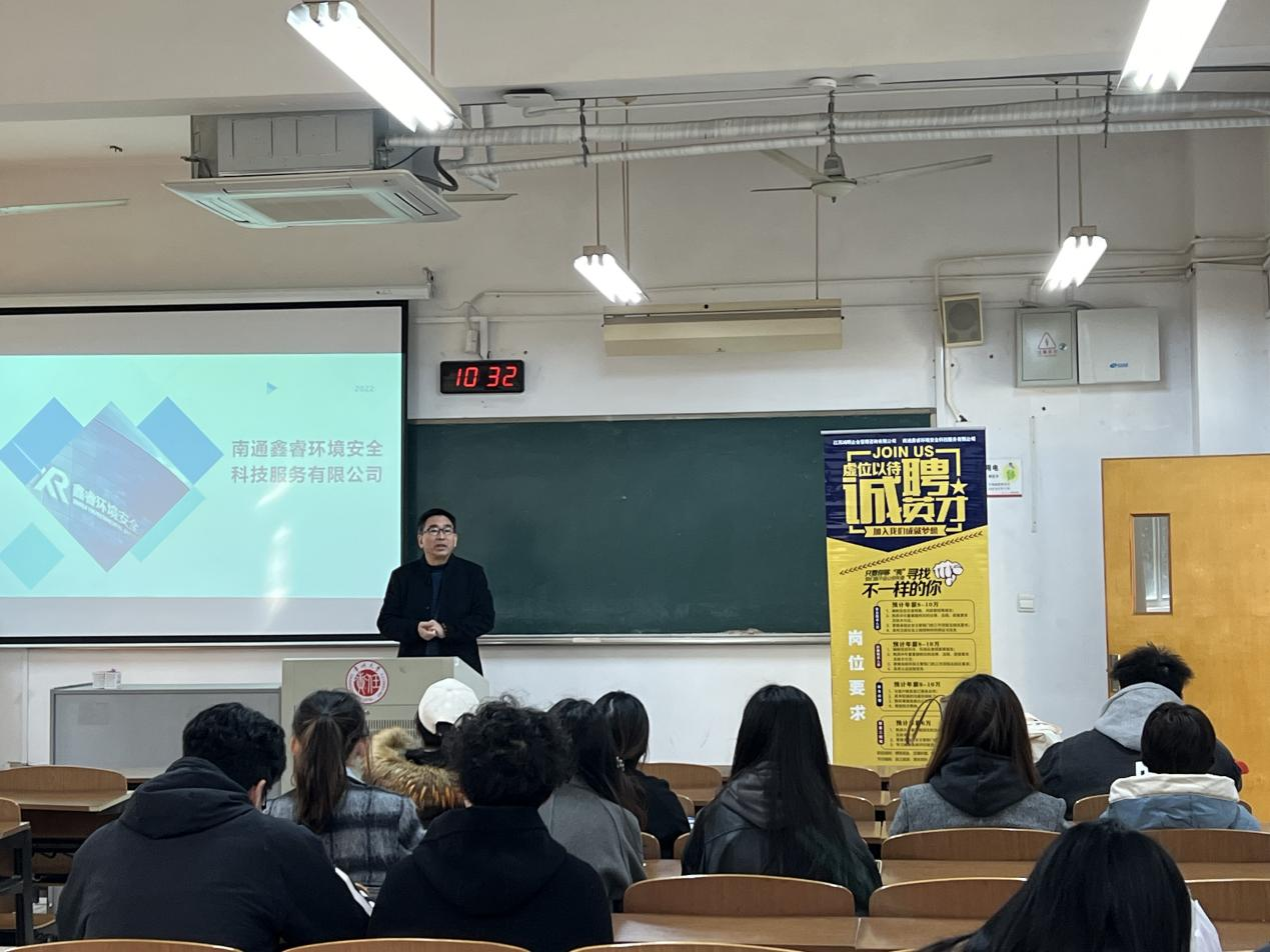 为进一步推动我院毕业生就业工作的开展,搭建企业招聘人才的平台,3月7日上午,石油与天然气工程学院、能源学院在W2117举办了南通鑫睿环境安全科技服务有限公司专场招聘宣讲会,此次宣讲会邀请到南通鑫睿环境安全科技服务有限公司董事长姜明忠作为主讲人,相关专业毕业生参加本次宣讲会。