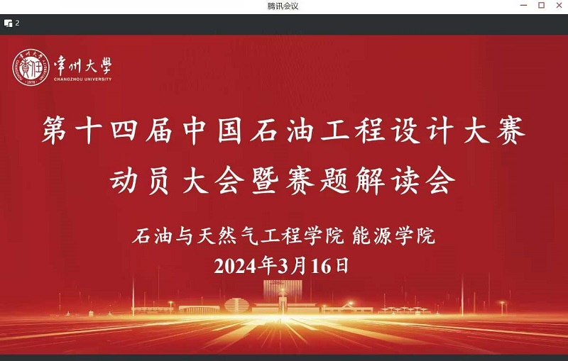 3月16日晚,“第十四届中国石油工程设计大赛动员大会暨赛题解读会”通过腾讯会议线上召开,石油与天然气工程学院、能源学院本科生及研究生班级代表和参赛学生参会,会议由柳扬老师主讲。
