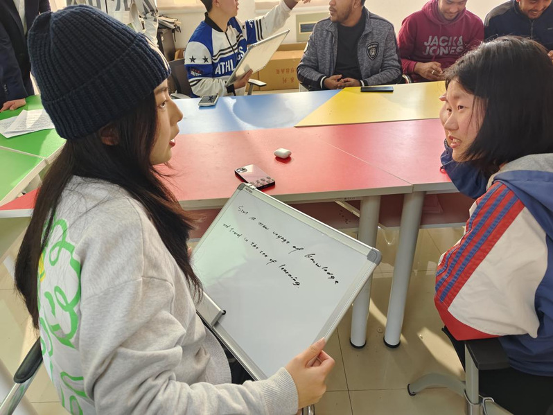活动中开展了一系列有趣的游戏如英语猜字谜、数字炸弹、单词接龙、英语绕口令和你画我猜等,同学们踊跃参与并积极互动。在活动最后,中外学生们展示了各自国家的才艺,整场活动在活跃温馨的氛围中圆满结束。