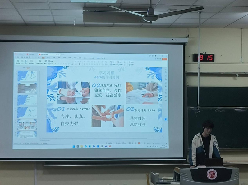 在会上的学习经验分享环节,各专业学习成绩优异的同学向大家介绍了自己在专业学习、科研竞赛、英语四六级等方面的心得体会和学习经验。同学们受益匪浅,现场气氛热烈。
